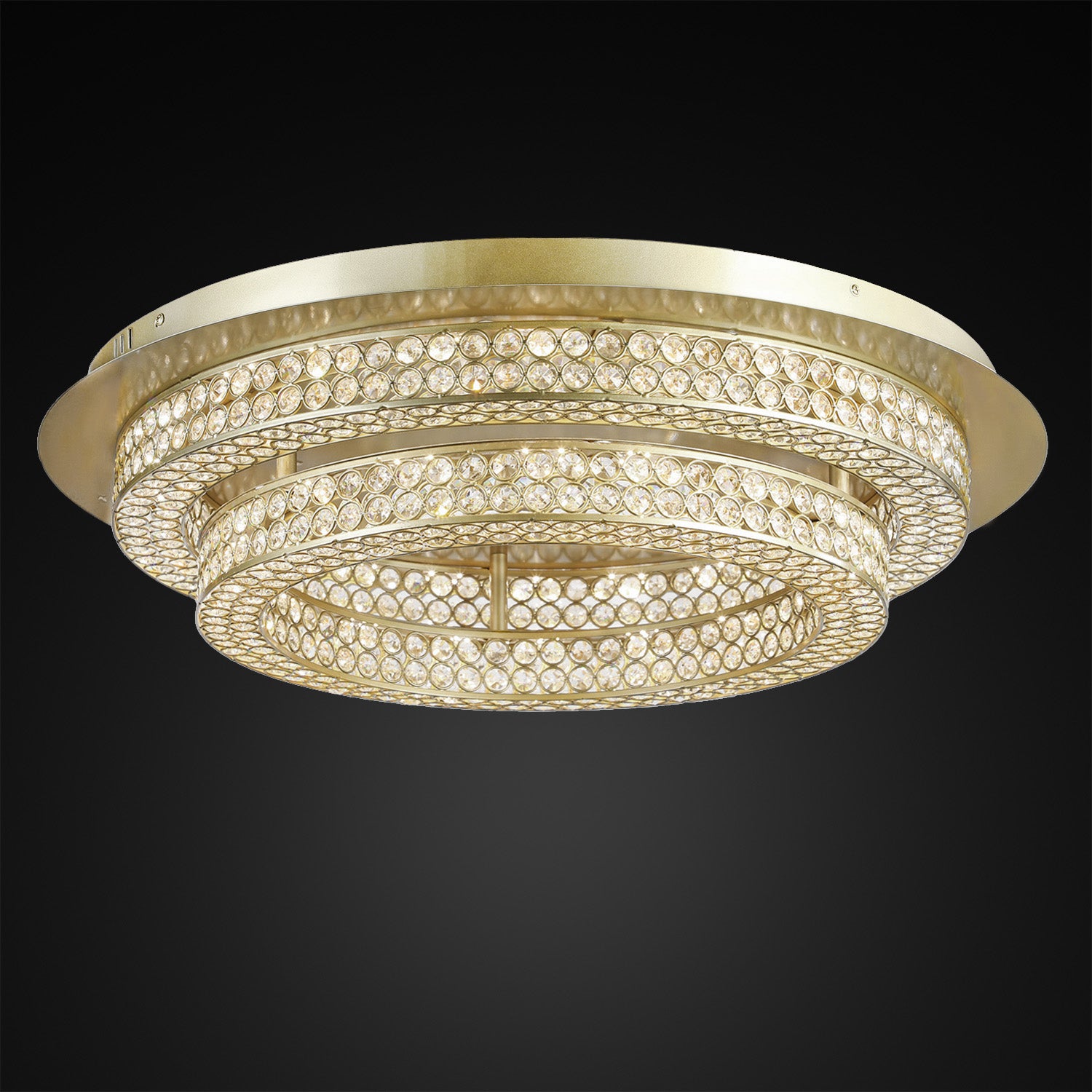 This stunning two tier flush mount fixture is full of glistening high quality crystals captured in a flawless Satin Gold frame. Set the mood using a low voltage LED dimmer or show off those beautiful crystals with it`s bright 45 watts of LED technology that emits over 2700 lumens with a white 3000K Color Temperature. Quality LED components and drivers will illuminate your space with superior energy efficiency, long life and durability.